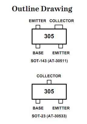 AT-30511-TR1G features: (1)High Performance Bipolar Transistor Optimized for Low Current, Low Voltage Operation; (2)900 MHz Performance; (3)Characterized for End-Of-Life Battery Use (2.7 V); (4)SOT-23 and SOT-143 SMT Plastic Packages; (5)Tape-And-Reel Packaging Option Available.