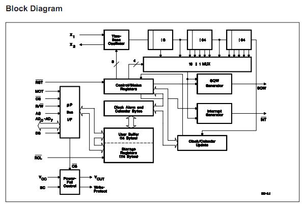 The BQ32000DR is a low-power microprocessor peripheral providing a time-of-day clock and 100-year calendar with alarm features and battery operation. Other features of the BQ32000DR include three maskable interrupt sources, square wave output, and 114 bytes of general nonvolatile storage.