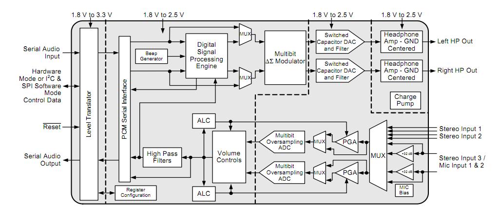 ![]() Audio CODECs Low Power Stereo CODEC w/ HP Amp |