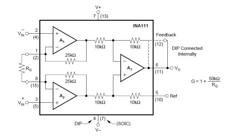 The INA111BP is a high speed, FET-input instrumentation amplifier offering excellent performance. The INA111BP uses a current-feedback topology providing extended bandwidth (2MHz at G = 10) and fast settling time (4ms to 0.01% at G = 100). A single external resistor sets any gain from 1 to over 1000. The applications of the INA111BP include medical instrumentation and data acquisition.