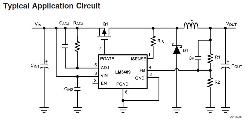 LM3489MM/NOPB absolute maximum ratings: (1)VIN Voltage: -0.3V to 36V; (2)PGATE Voltage: -0.3V to 36V; (3)FB Voltage: -0.3V to 5V; (4)ISENSE Voltage: -1.0V to 36V, -1V (<100ns); (5)ADJ Voltage: -0.3V to 36V; (6)EN Voltage: -0.3V to 6V; (7)Maximum Junction Temp: -150℃; (8)Power Dissipation, TA = 25℃: 417mW; (9)ESD Susceptibilty Human Body Model: 2kV; (10)Lead Temperature: Vapor Phase (60 sec.) 215℃, Infared (15 sec.) 220℃; (11)Storage Temperature: -65℃ to 150℃.