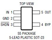 LT1761ES5-2.5#TRPBF absolute maximum ratings: (1)IN Pin Voltage: ±20V; (2)OUT Pin Voltage: ±20V; (3)Input to Output Differential Voltage: ±20V; (4)ADJ Pin Voltage: ±7V; (5)BYP Pin Voltage: ±0.6V; (6)SHDN Pin Voltage: ±20V; (7)Output Short-Circut Duration: Indefinite; (8)Operating Junction Temperature Range: –40℃ to 125℃; (9)Storage Temperature Range: –65℃ to 150℃; (10)Lead Temperature (Soldering, 10 sec): 300℃.