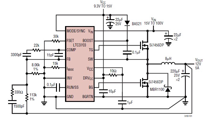 The LTC3728LXCUH#TRPBF is a synchronous step-down switching regulator controller that can directly step down voltages from up to 100V, making it ideal for telecom and automotive applications. The LTC3728LXCUH#TRPBF drives external N-channel MOSFETs using a constant frequency (up to 600kHz), voltage mode architecture. The applications of the LTC3728LXCUH#TRPBF include: (1)48V Telecom and Base Station Power Supplies; (2)Networking Equipment, Servers; (3)Automotive and Industrial Control.