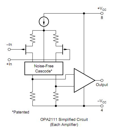 OPA2134UA features: (1)low noise: 100% Tested, 8nV/√Hz max at 10kHz; (2)low bias current: 4pA max; (3)low offset: 500μV max; (4)low drift: 2.8μV/℃; (5)high open-loop gain: 114dB min; (6)high common-mode rejection: 96dB min.