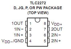 TLC2272CD absolute maximum ratings: (1)Supply voltage:8 V; (2)Supply voltage:-8 V; (3)Differential input voltage:±16 V; (4)Input voltage range:VDD- -0.3V to VDD+; (5)Input current:±5 mA; (6)Output current:±50 mA ; (7)Total current into:±50 mA; (8)Total current out of VDD-:±50 mA; (9)Duration of short-circuit current at (or below) 25℃:unlimited .