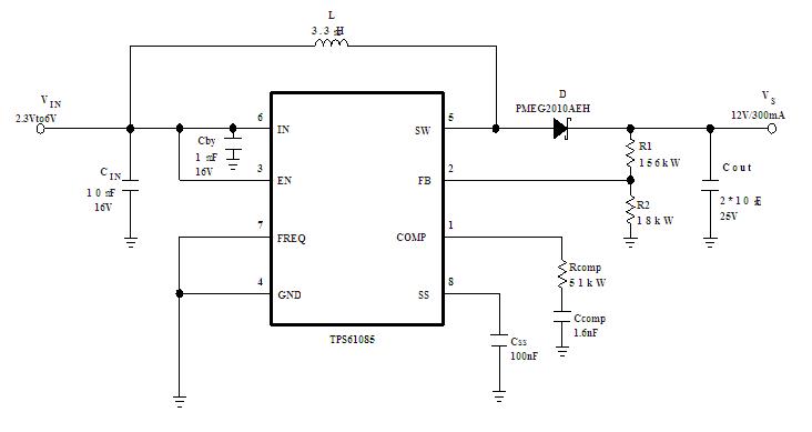 The TPS61085DGKR is a high frequency, high efficiency DC to DC converter with an integrated 2.0 A, 0.13Ω power switch capable of providing an output voltage up to 18.5 V. The selectable frequency of 650 kHz and 1.2 MHz allows the use of small external inductors and capacitors and provides fast transient response. The external compensation allows optimizing the application for specific conditions. A capacitor connected to the soft-start pinminimizes inrush current at startup. The applications of the TPS61085DGKR include Handheld Devices, GPS Receiver, Digital Still Camera, Portable Applications, DSL Modem, PCMCIA Card, TFT LCD Bias Supply.